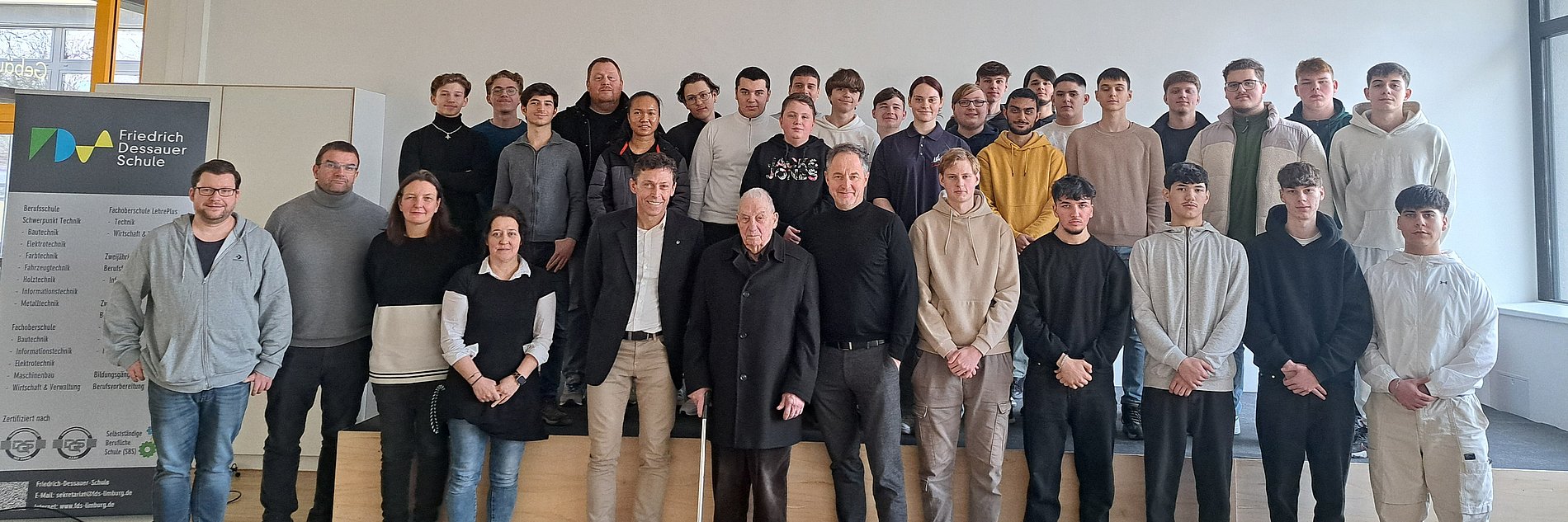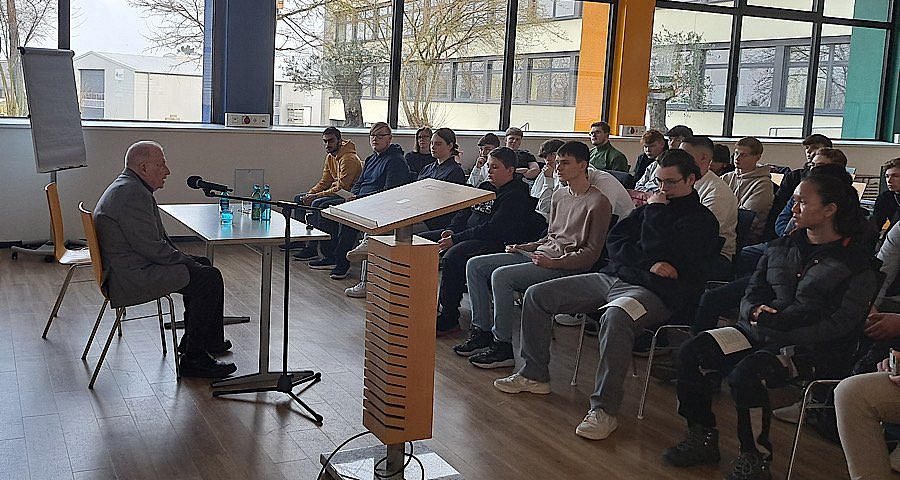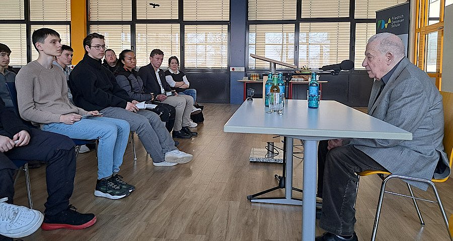 Zwei Berufsfachschulklassen der Beruflichen Schulen der Friedrich-Dessauer-Schule Limburg hatten am 22.01.2025 die Gelegenheit, mit Gerhard Wiese ins Gespräch zu kommen. Zuletzt war Gerhard Wiese im Rahmen der Limburger Zeitzeugenwoche im Oktober 2024 mit Schüler:innen im Bistumsgebiet im Gespräch. Sehr persönlich erzählte er seine Lebensgeschichte, beginnend mit seiner Kindheit in Berlin, dem Glück, am Ende des II.Weltkriegs nicht von sowjetischen Soldaten erschossen worden zu sein, dem Zufall, dass er Jura studierte, und dem Zufall, dass er für zwei der schlimmsten Verbrecher von Auschwitz die Anklage erhob.